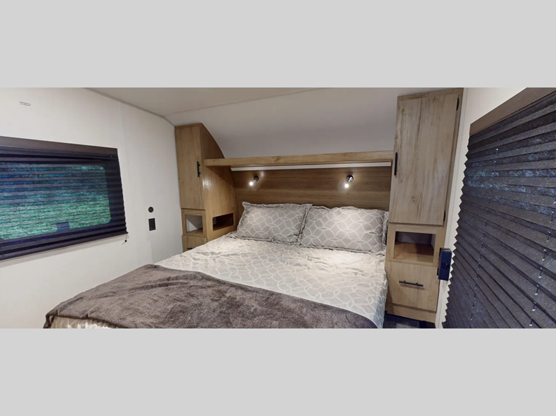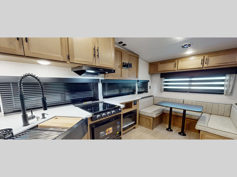 Sleeps 6 Slides 1 Length 29 ft 10 in Ext Width 8 ft Ext Height 12 ft 10 in Hitch Weight 1410 lbs GVWR 9985 lbs Dry Weight 7413 lbs Cargo Capacity 2572 lbs Fresh Water Capacity 40 gals Grey Water Capacity 38 gals Black Water Capacity 38 gals Available Beds Queen Refrigerator Type Cannon 12V Residential Refrigerator Size 11 cu ft Convection Cooking Yes Cooktop Burners 3 Number of Awnings 1 Water Heater Type On Demand Tankless AC BTU 15000 btu Awning Info 15' Power Axle Count 2 Shower Type Standard Similar Floorplans